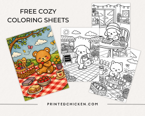 PrintedChicken.com is a cozy corner of the internet – offering free printable coloring pages, calming page coloring books like Cozy Days, cute clip art, and other fun, feel-good printables designed to help you slow down and unwind. Everything is simple, cozy, and easy to print at home – no pressure, just gentle creativity when you need it most.